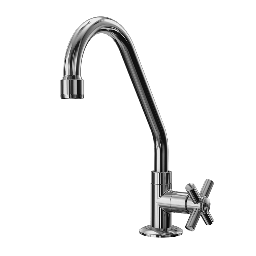 Seu corpo em metal cromado garante alta resistência à corrosão e durabilidade, enquanto o bico alto e giratório facilita o uso em diversos tipos de pias.